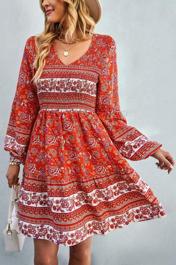 A gorgeous dress to make you feel like a boho babe. This dress is an absolute dream with a V-neck and long balloon sleeves! Perfect for a warm spring day or a sunny vacation, we love the carefree boho vibe of this dress.