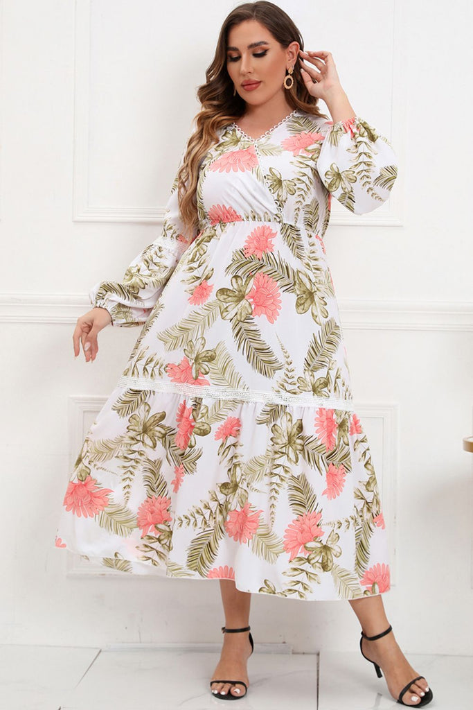 Plus Size Spliced Lace Surplice Balloon Sleeve Maxi Dress