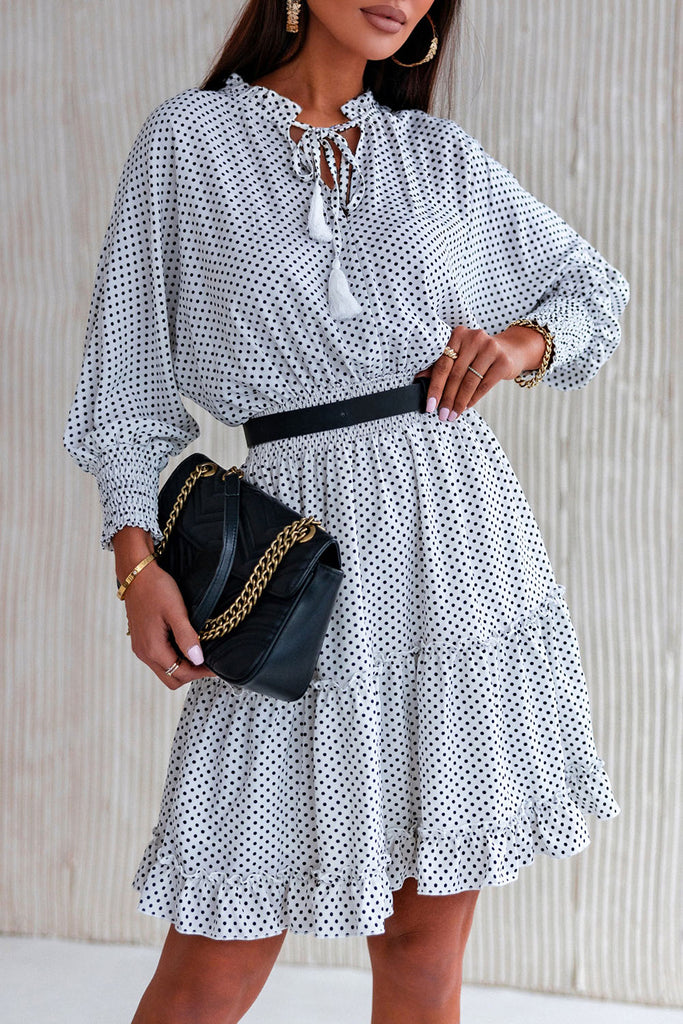 Polka Dot Tassel Tie Ruffle Hem Dress
