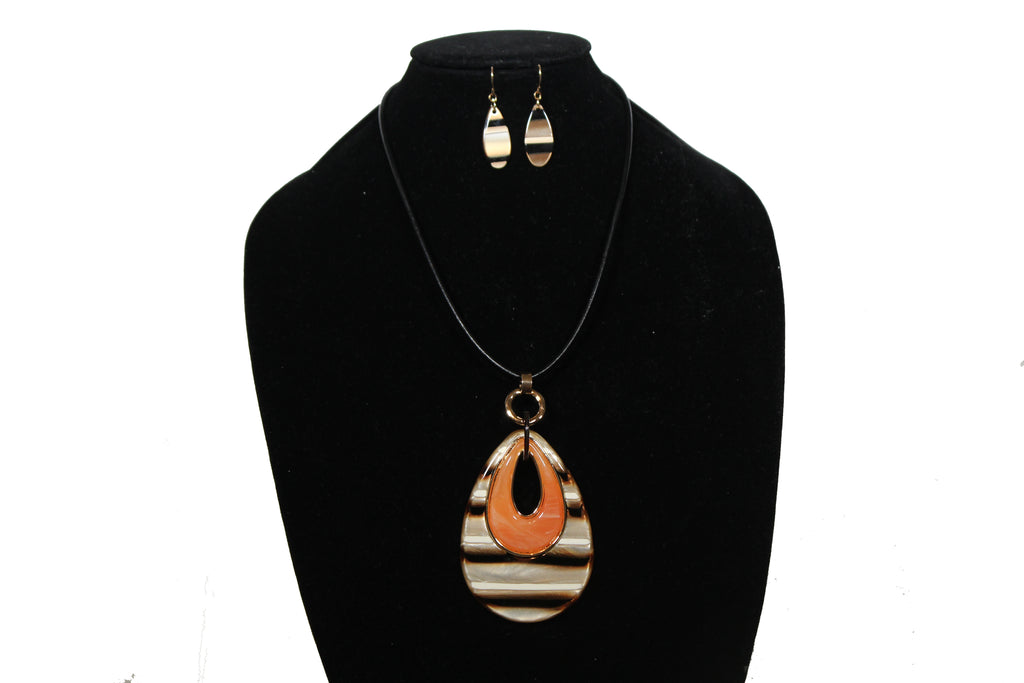 Acrylic teardrop-shaped and triple geometry oval circle Pendant that hangs from a gold-tone curber chain. Accentuate your style with this long pendant necklace.
